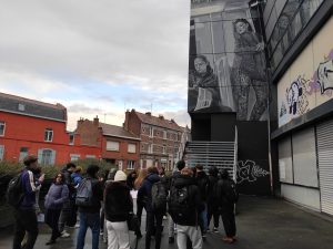 Les élèves de 1 STMG A sont partis à la découverte ce matin des fresques murales de Lille, visite organisée par le Collectif Renart dont l’objectif est de promouvoir l’accès à l’art en privilégiant le lien social et en présentant la diversité des démarches, époques et styles de l’art mural contemporain.