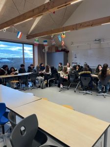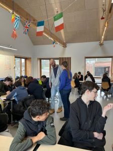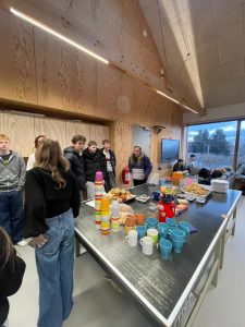 Ils prennent leur petit déjeuner avec les élèves danois et portugais et vont ensuite faire un